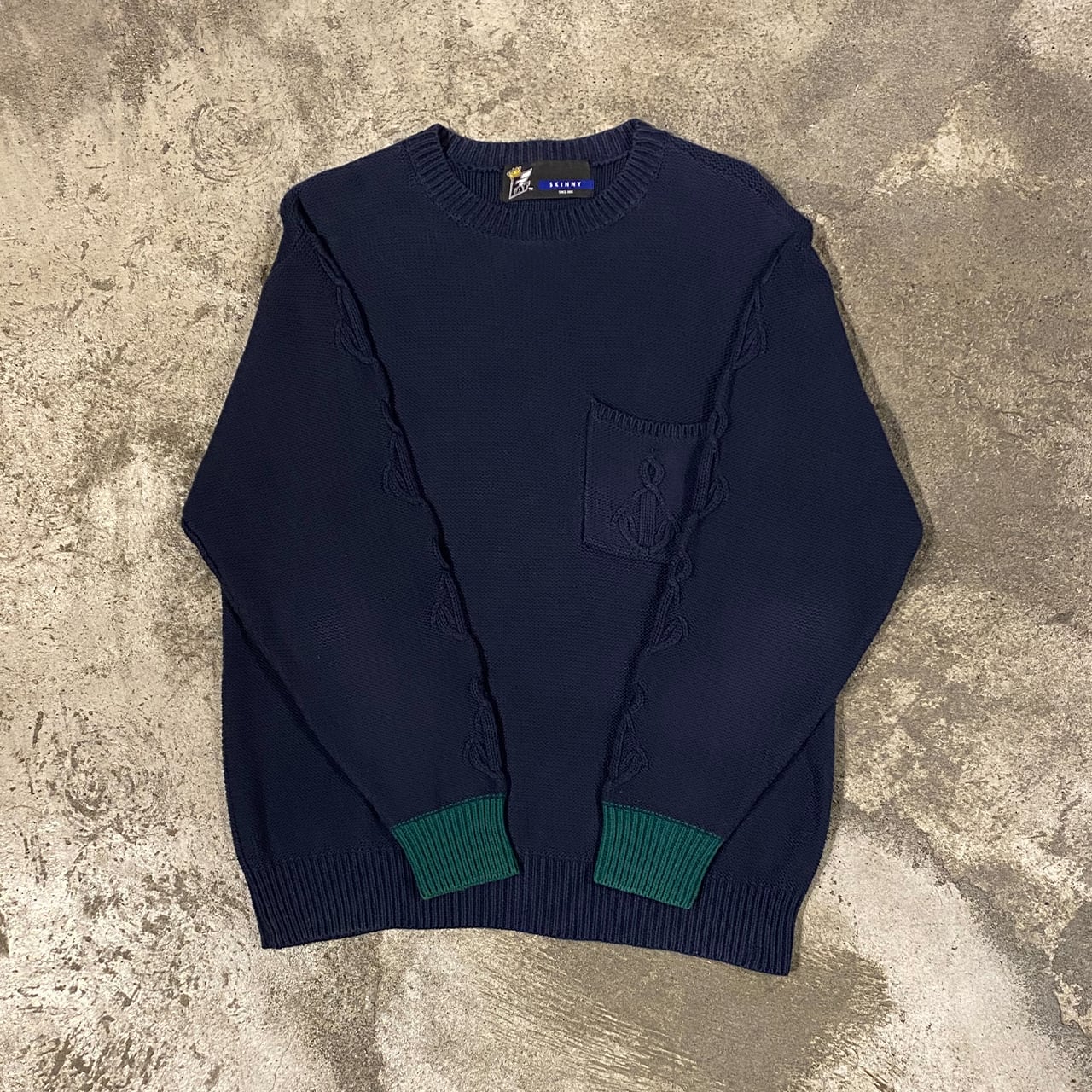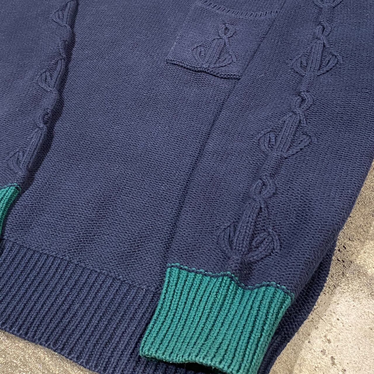 袖と左胸にアンカーの編み。
