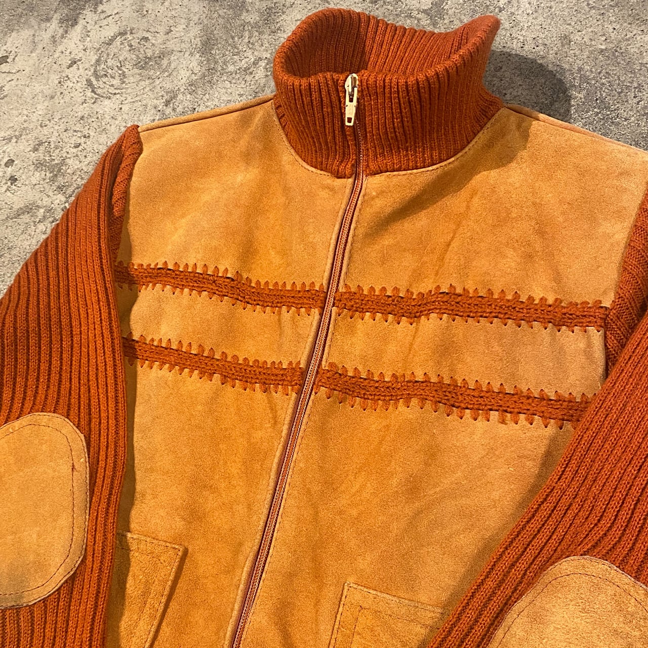 top skins L/S SUEDO LEATHER KNIT JACKET トップスキンズ 長袖 スウェード レザー ニット ジャケット メンズ レディース Lサイズ 古着 ヴィンテージ