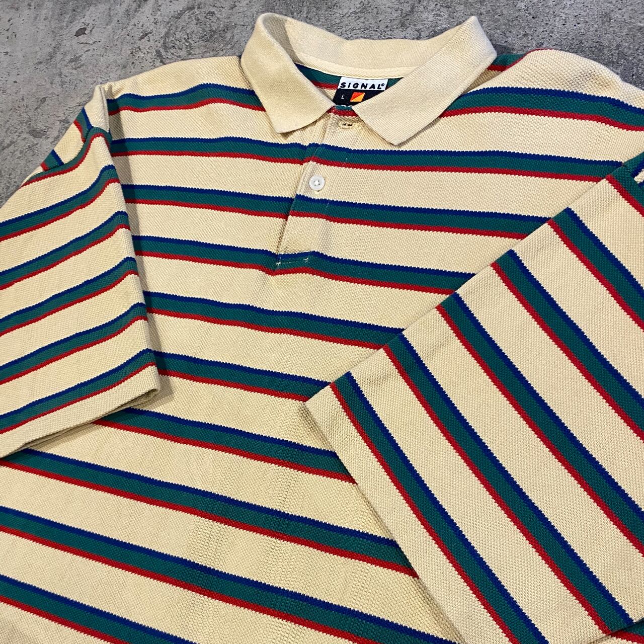 SIGNAL SPORTS S/S BORDER POLO SHIRT シグナルスポーツ 半袖 ボーダー ポロシャツ メンズ Lサイズ 古着 ヴィンテージ ストリート レゲエ カジュアル