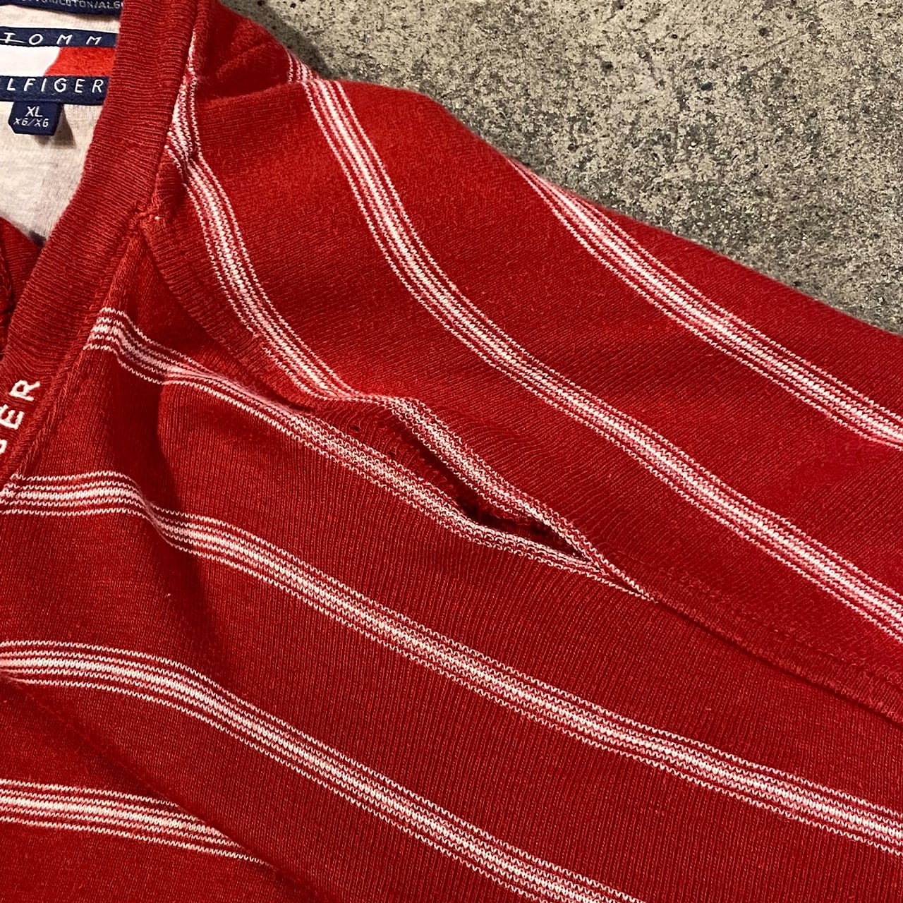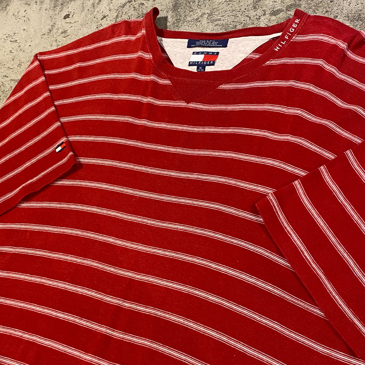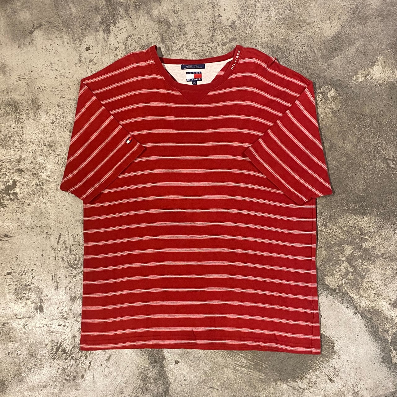 90s TOMMY HILFIGER S/S BORDER T-SHIRT トミーフィルガー 半袖 ボーダー Tシャツ メンズ XLサイズ 古着 ヴィンテージ ストリート HIPHOP