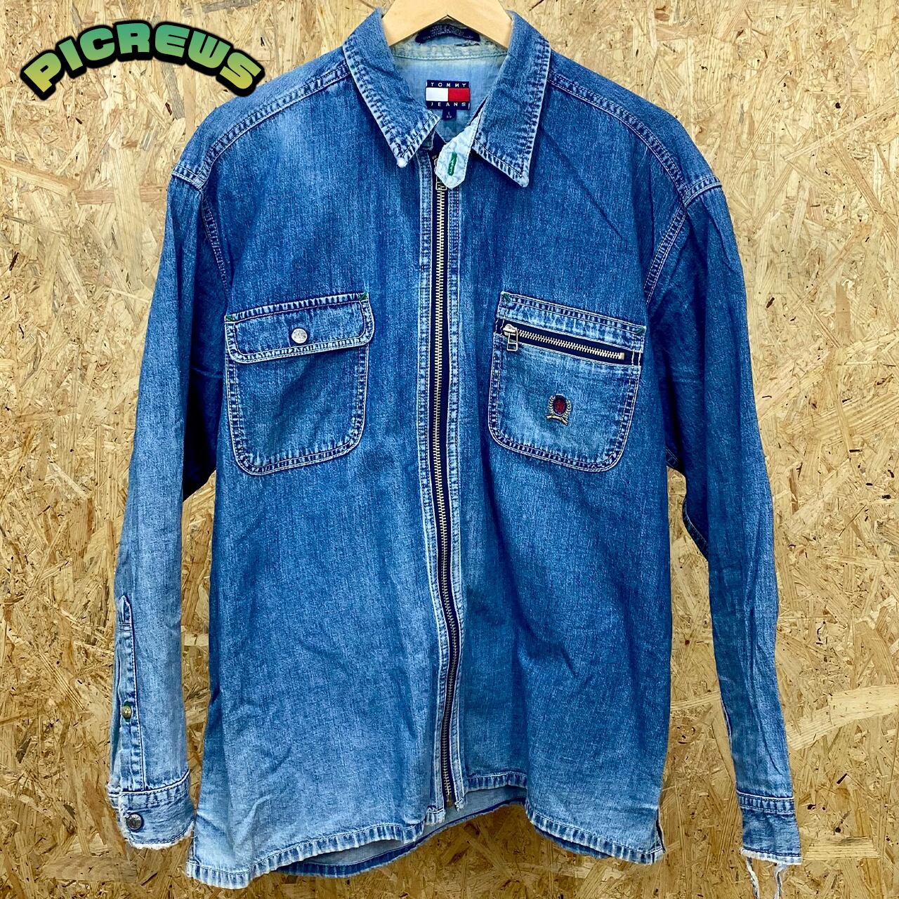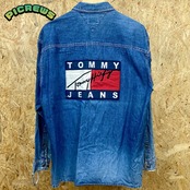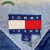 90s TOMMY JEANS トミージーンズ ジップアップ デニム ジャケット メンズ Lサイズ 古着 ヴィンテージ