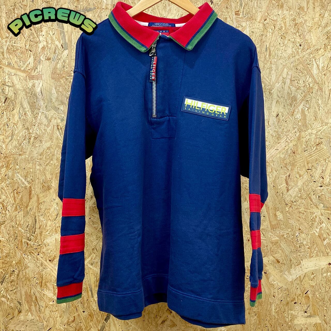 90s TOMMY HILFIGER トミーフィルガー 長袖 ハーフジップ セーリング ラガーシャツ メンズ Mサイズ 古着 ヴィンテージ
